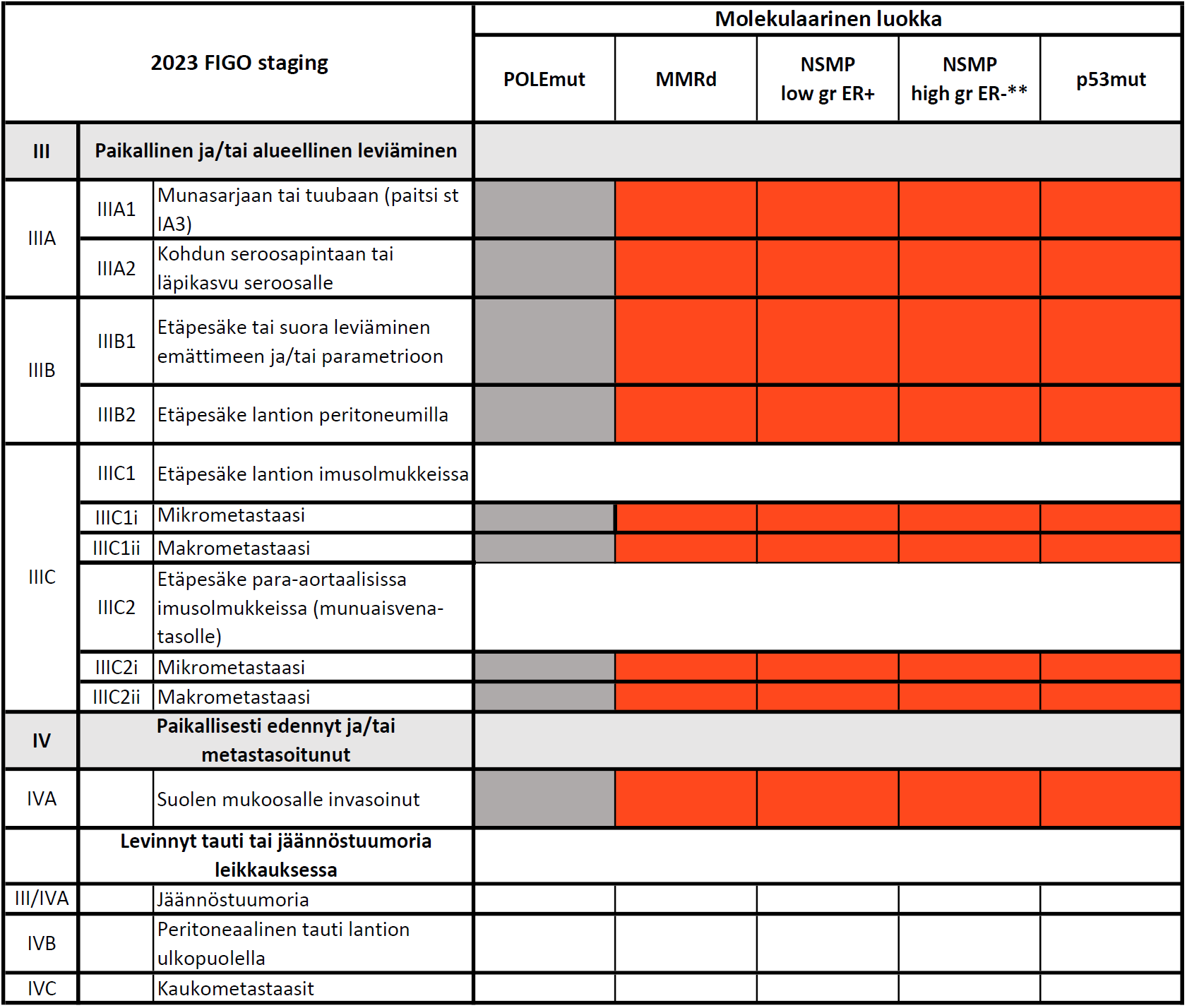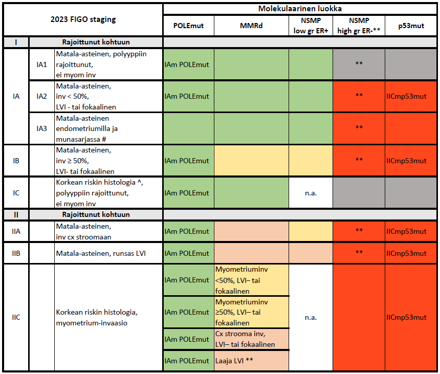 - Suositellaan käyttämään FIGO ja TNM luokitusta rinnakkain